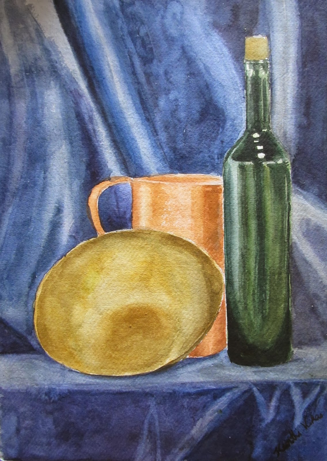It is a study drawing, experimenting with watercolors. It took a while to finish this. The drapery effects were the hardest to draw. I used a layered approach in this painting.